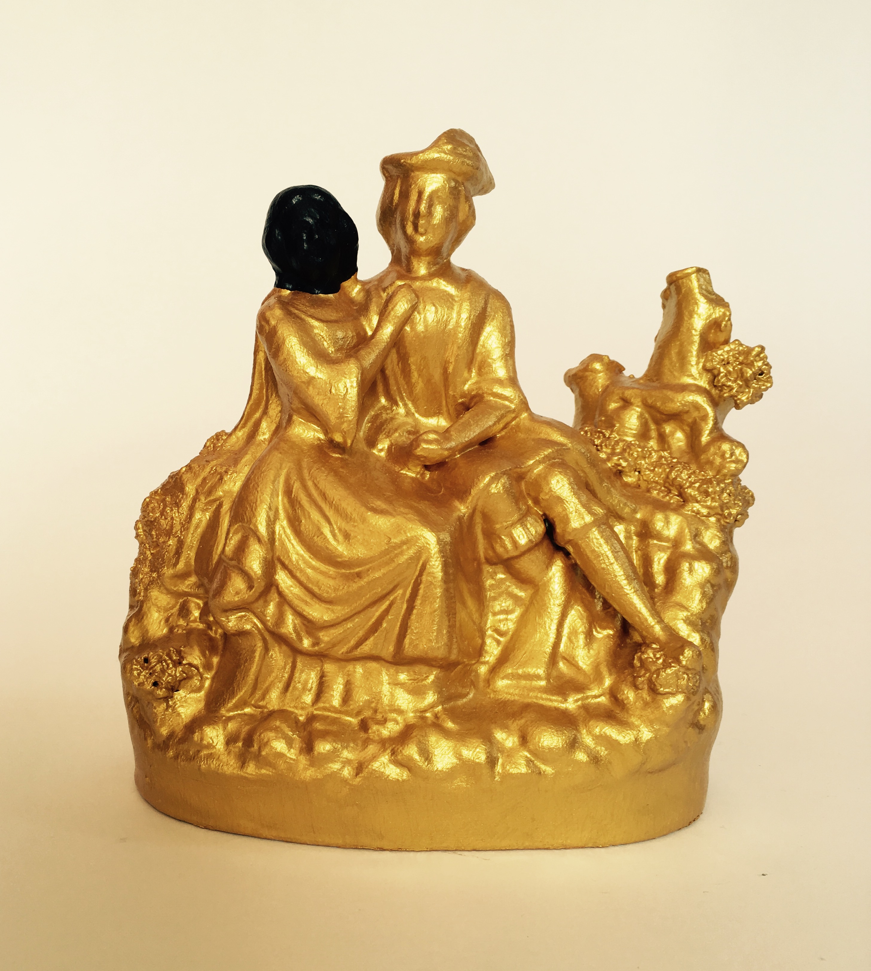 They are objects that attracted me for a variety of reasons, objects made of iron, ceramic, wood, plaster, clay, all covered in golden paint that, like a Midas' touch, creates a sense of transformation, from the mundane to the opulent.